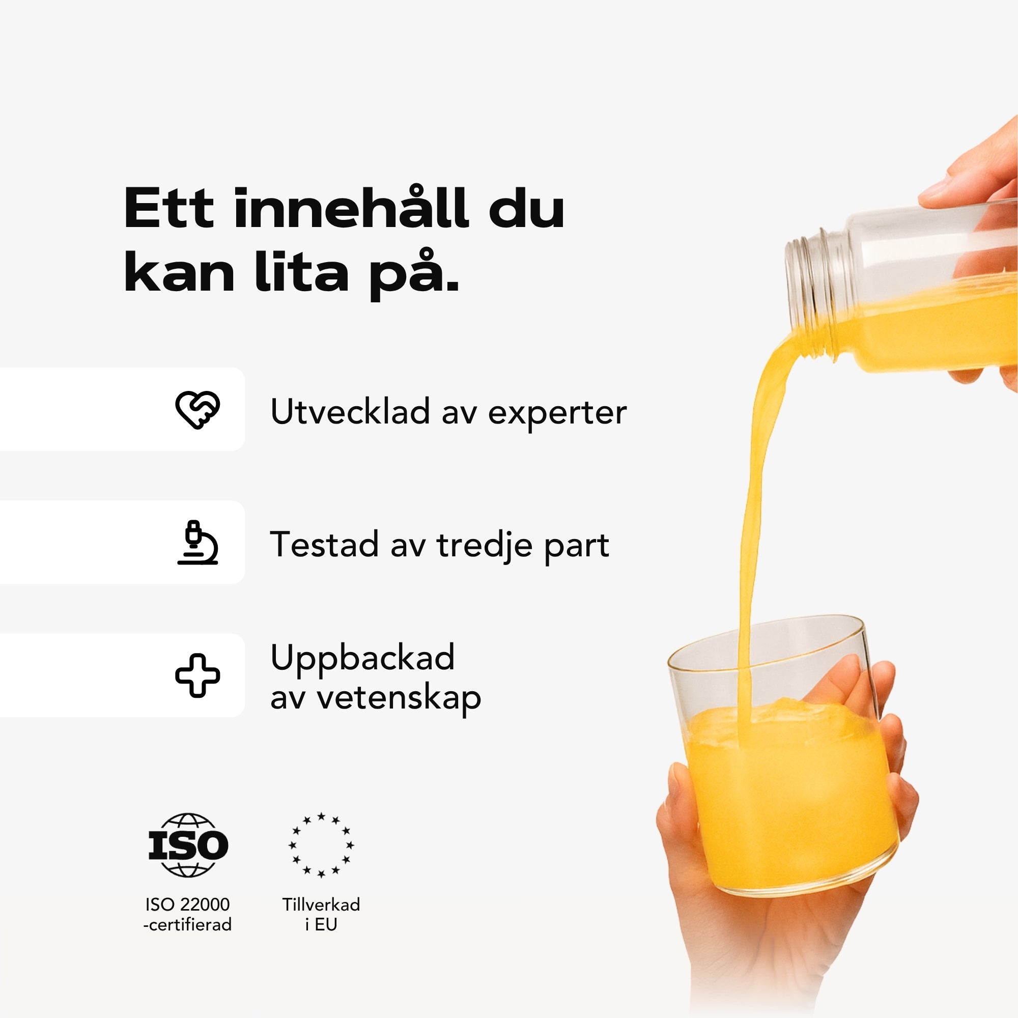 Löses snabbt i vatten för en smidig och välsmakande energilösning.