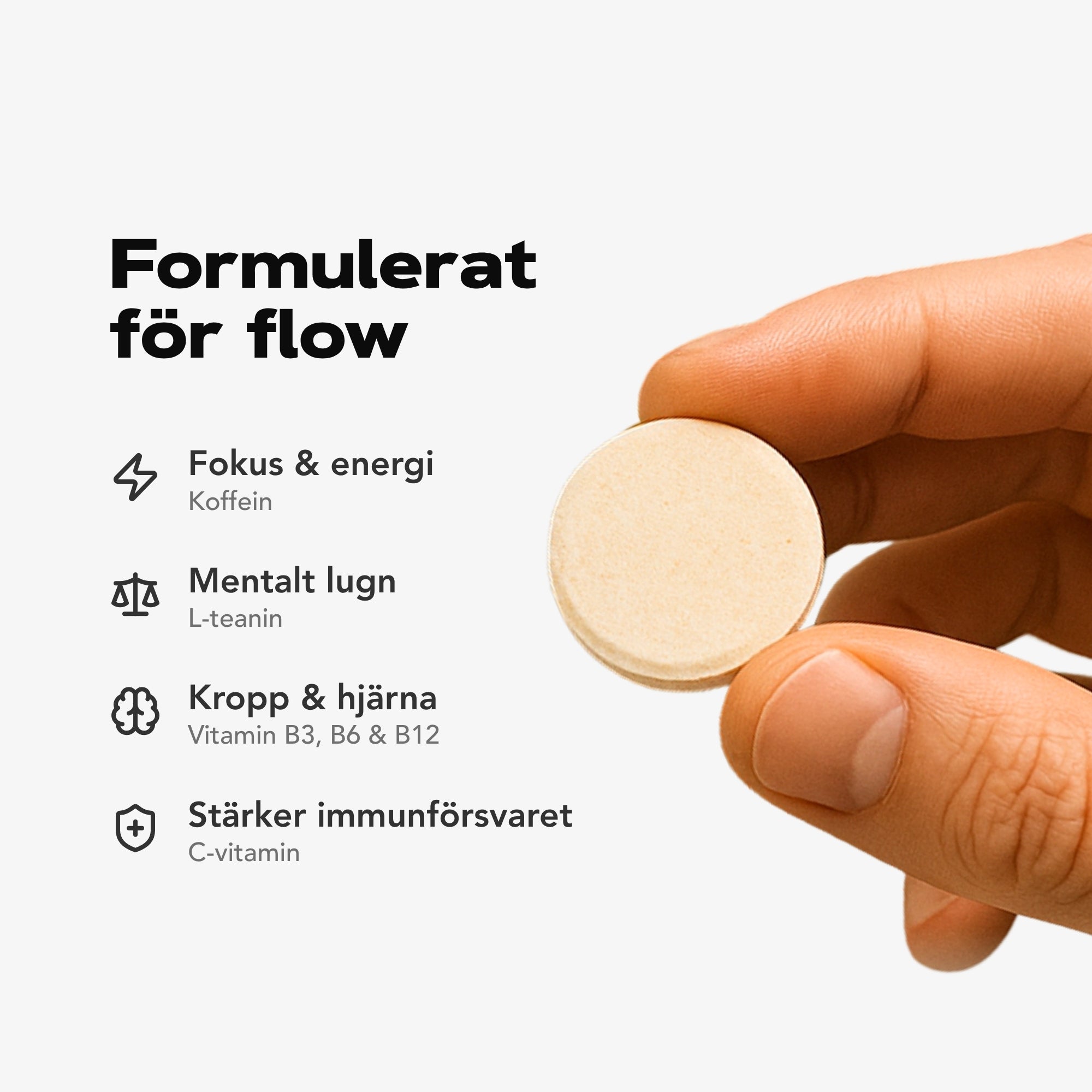 Koffein och L-teanin för jämn energi utan snabba toppar eller krascher.¹